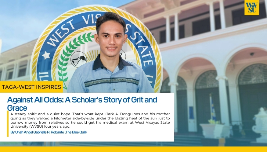 A steady spirit and a quiet hope. That’s what kept Clark A. Donguines and his mother going as they walked a kilometer side-by-side under the blazing heat of the sun just to borrow money from relatives so he could get his medical exam at West Visayas State University (WVSU) four years ago.