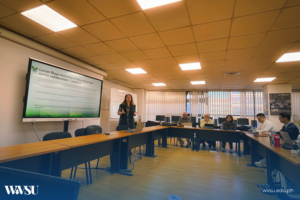 The delegation then proceeds with activities under the Faculty of Business and Management (FBM), which include a courtesy meeting with the dean, a guided tour of the FBM campus, and an international seminar hosted by the Institute of Business Excellence (IBE). Selected WVSU faculty members deliver 10-minute research presentations, featuring diverse academic disciplines and research outputs. Dr. Ma. Flora C. Collado serves as the keynote speaker, emphasizing the importance of academic collaboration and global knowledge exchange.