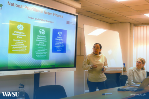 Building on this, Dr. Maria Corazon M. Samorin, Project Manager from the College of Business and Management, examined the Green Finance landscape in the Philippines, outlining key national policies, regulatory developments, and emerging market needs that shape the country’s sustainable finance ecosystem.