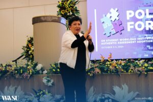 Additionally, Dr. Ma. Asuncion Christine V. Dequilla, Vice President for Academic Affairs, WVSU, directed the discussion towards the adoption of student workload standardization and authentic assessment from the top management and administrator perspective. Her presentation addressed the implications of the initiative to the various facets of higher education, including instruction, extension, research, production, and internationalization.