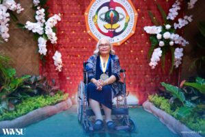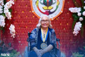 “I feel I owe much to my alma mater. I could not have led this life that I have now if not for West Visayas State College [WVSU’s former name]. I owe so much to this university. It shaped me into this well-balanced personality. It shaped me to be strong, to be assertive, and to not give up easily… It helped me in my profession, in my family life, even in rearing my five children, and even in dealing with people.”