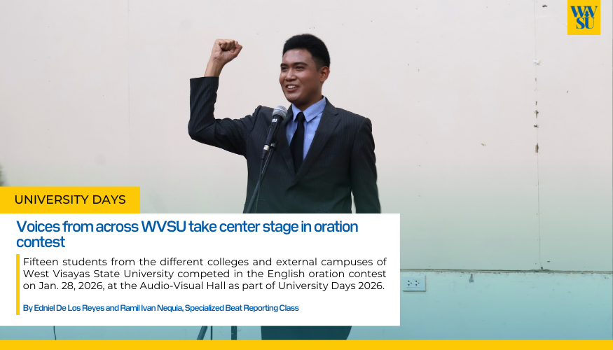 Fifteen students from the different colleges and external campuses of West Visayas State University competed in the English oration contest on Jan. 28, 2026, at the Audio-Visual Hall as part of University Days 2026.