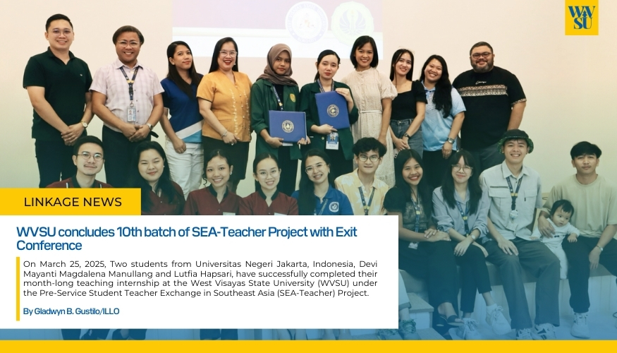 On March 25, 2025, Two students from Universitas Negeri Jakarta, Indonesia, Devi Mayanti Magdalena Manullang and Lutfia Hapsari, have successfully completed their month-long teaching internship at the West Visayas State University (WVSU) under the Pre-Service Student Teacher Exchange in Southeast Asia (SEA-Teacher) Project.