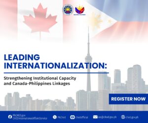 West Visayas State University (WVSU) has been selected as one of the 30 Philippine Higher Education Institutions (HEIs) to participate in the Commission on Higher Education (CHED) – Canadian Bureau for International Education (CBIE) Project entitled “Leading Internationalization: Strengthening Institutional Capacity and Canada-Philippines Linkages.”