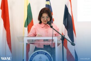 Rev. Fr. Merwin Kangleon, School Director of St. Thomas Aquinas College – Sogod (STACS) as represented by the Assistant School Director, Ms. Ressa Pigte, spoke about STACS’ journey in “Rooted in Wisdom, Reaching the World: STACS’ Journey Toward Global Academic Harmony.” She shared the college’s vision of enhancing academic exchange and ensuring a harmonious balance between local values and global opportunities.
