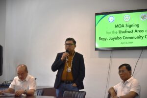 West Visayas State University (WVSU), through Dr. Villaruz, signed a usufruct agreement with Brgy. Jayobo, Lambunao, today, April 3, 2024, at the Lambunao Government Center. This agreement will allow them to utilize WVSU-CAF land for the construction of a gymnasium and multi-purpose hall. Dr. Villaruz emphasized that this project aligns with the university’s core function of extension, benefiting the community at large.