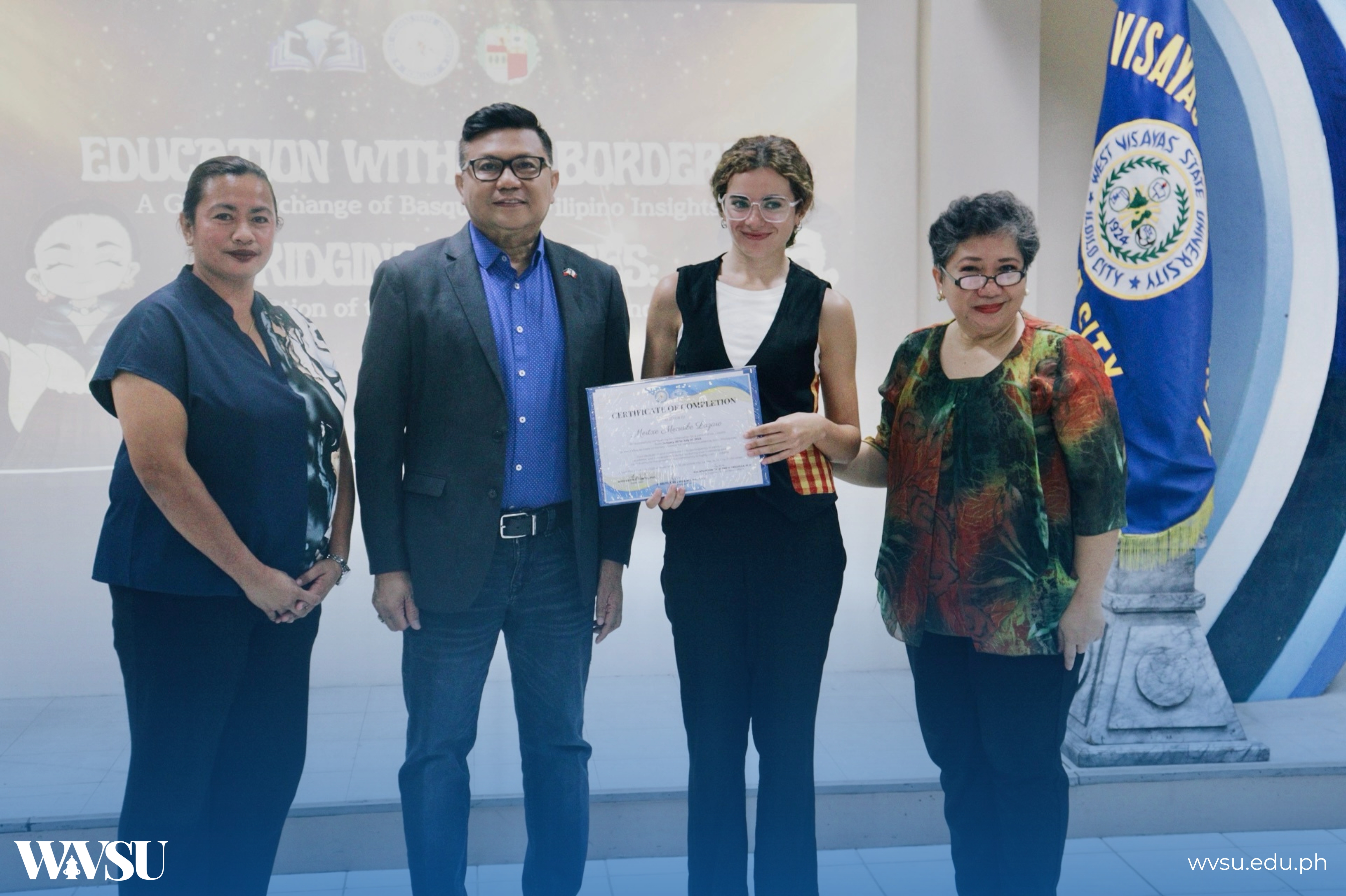 West Visayas State University (WVSU) concluded the six-month internship of two Spanish interns, Mertxe and Pilar, from the Basque Government’s Global Training Grant Program through a culminating event titled “Education Without Borders: A Global Exchange of Basque and Filipino Insights and Bridging Cultures: Presentation of the Multilingual Compendium” today, July 15, at the Center for Teaching Excellence (CTE) Hall.