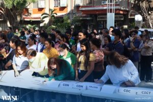 West Visayas State University (WVSU) announced key personnel activities and transport arrangements during its flag-raising ceremony on Mar. 23 at Jubilee Park, led by the University Learning Resource Center headed by Dr. Elra Di M. Madalogdog.