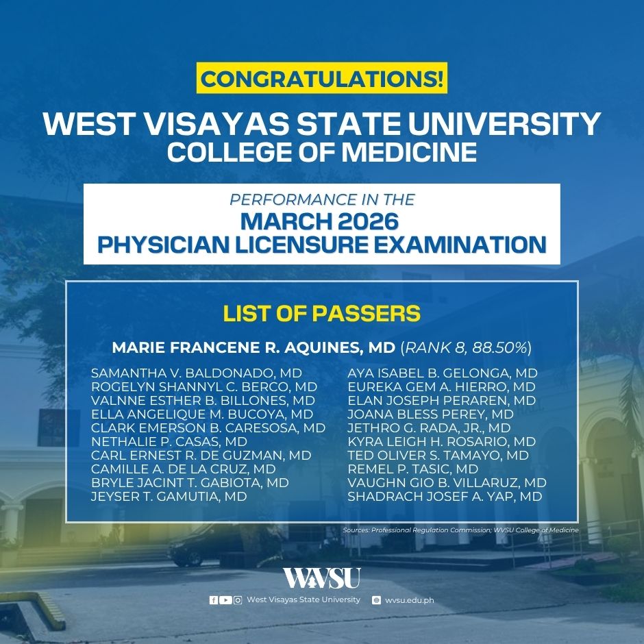 West Visayas State University upholds a strong culture of excellence in all its endeavors. With over 120 years of history shaped by dedicated pioneers, mentors, and alumni, the university has earned recognition for producing topnotchers in Education, Medicine, and Nursing. Through diverse academic programs offered across its main and satellite campuses, WVSU continues to contribute significantly to human resource development and nation-building.